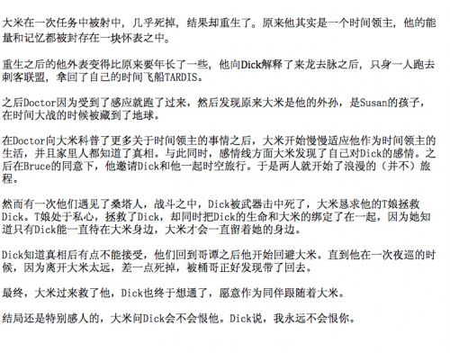 cross。没想到我居然能看到这两部作品的cross小说啊!!!简直感人!!写得挺不错的,大米的设定是一个时间领主,是Doctor的外孙。简介戳图,因为涉及不少DW的设定,所以如果没看过DW可能会有很多地方比较茫然,但是这篇真心不错!